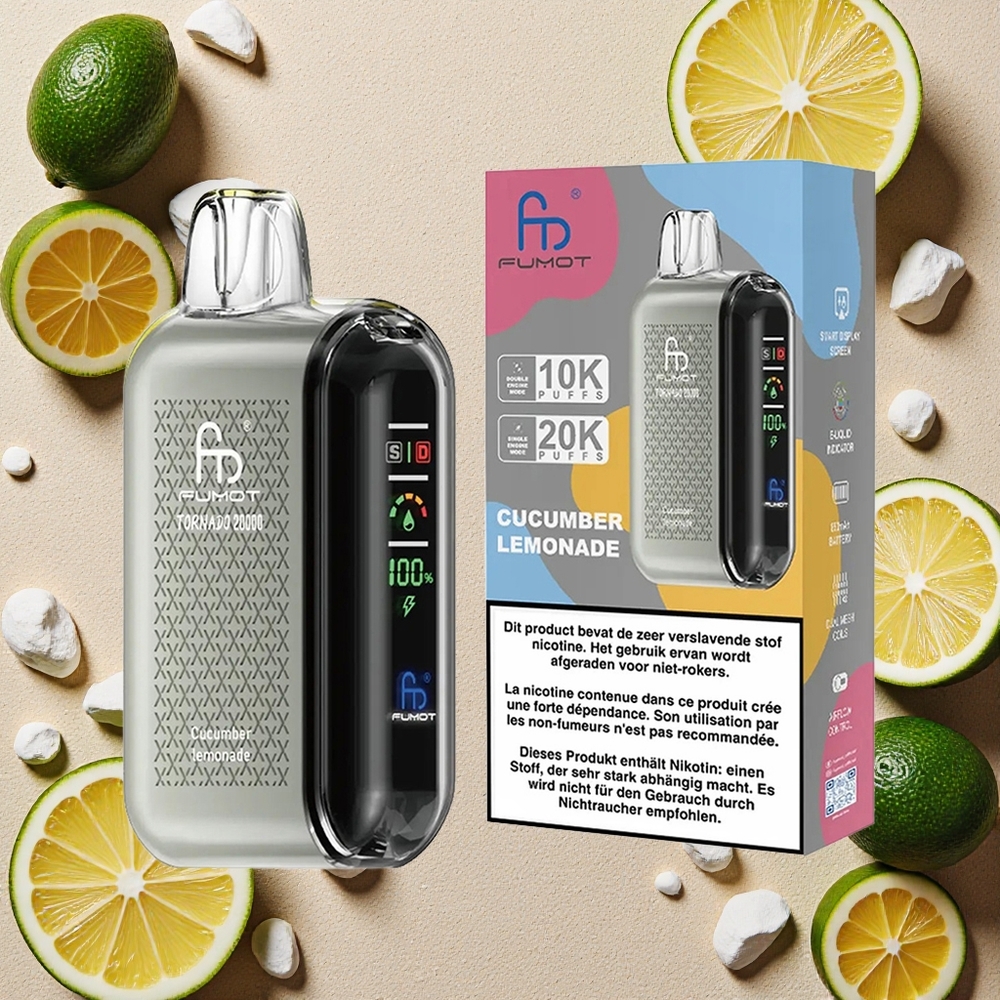Agurke Citronvand Fumot Tornado 20000 Puffs Dobbelt Mesh Spole