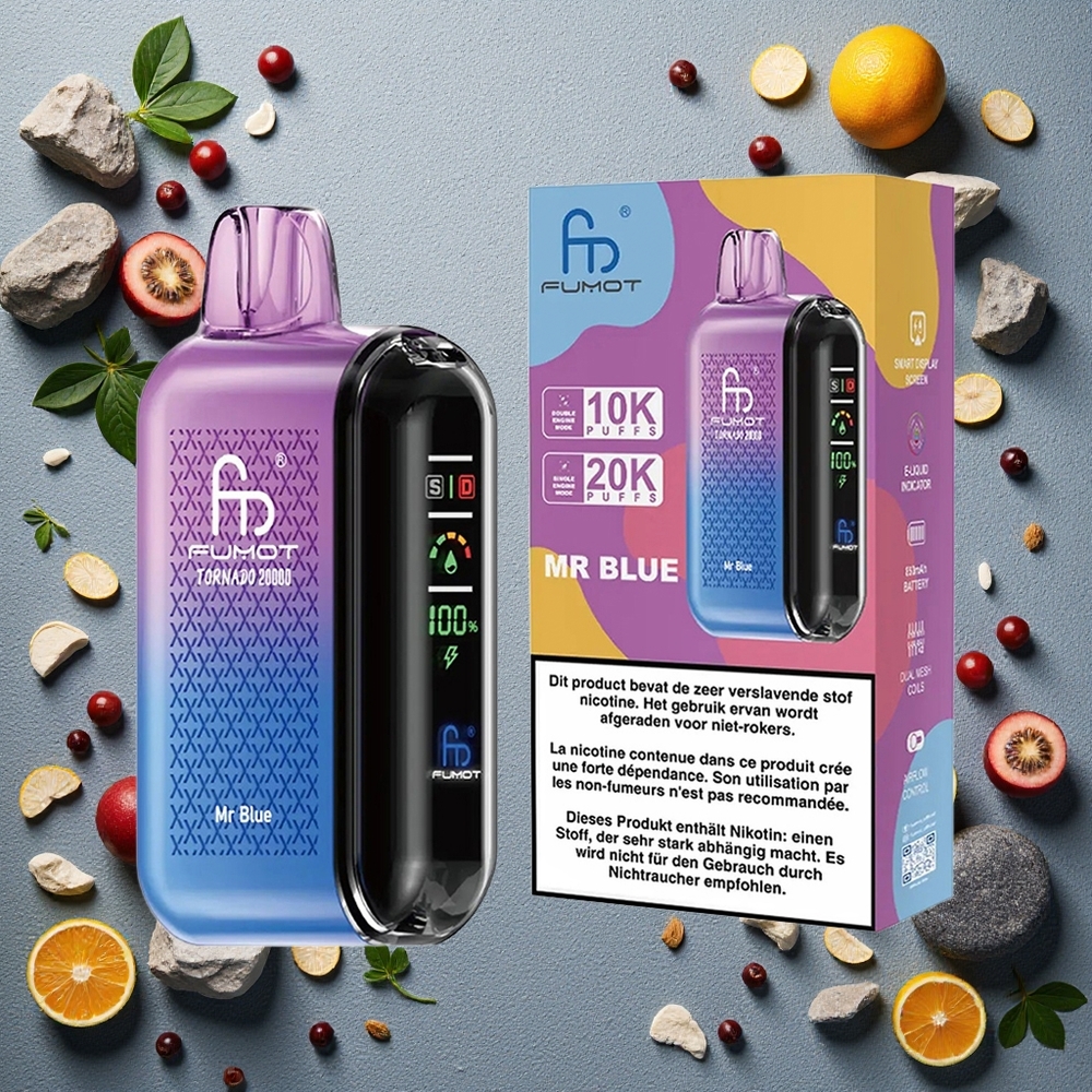 Blå Fumot Tornado 20000 Puffs Dobbelt Mesh Spole Smart-skærm