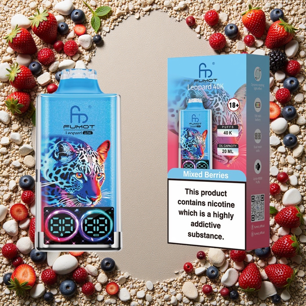 Blandede Bær Fumot Leopard 40000 Puffs 0% 2% 3% 5% Nikotin Type-C Opladning Digital Oliekraftdisplay