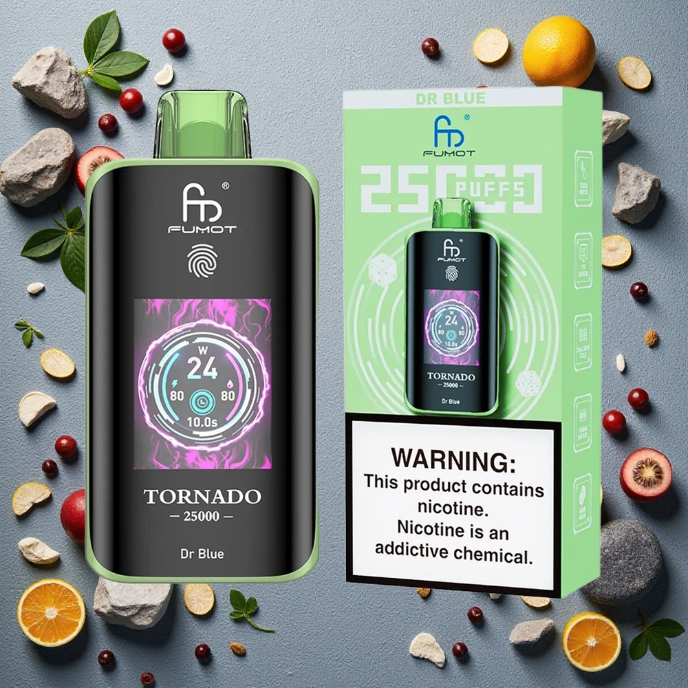 Dr Blå Fumot Tornado 25000 Puffs HD Skærm 700mAh Genopladelig Batteri 20ml Forfyldt E-væske Type-C Opladning