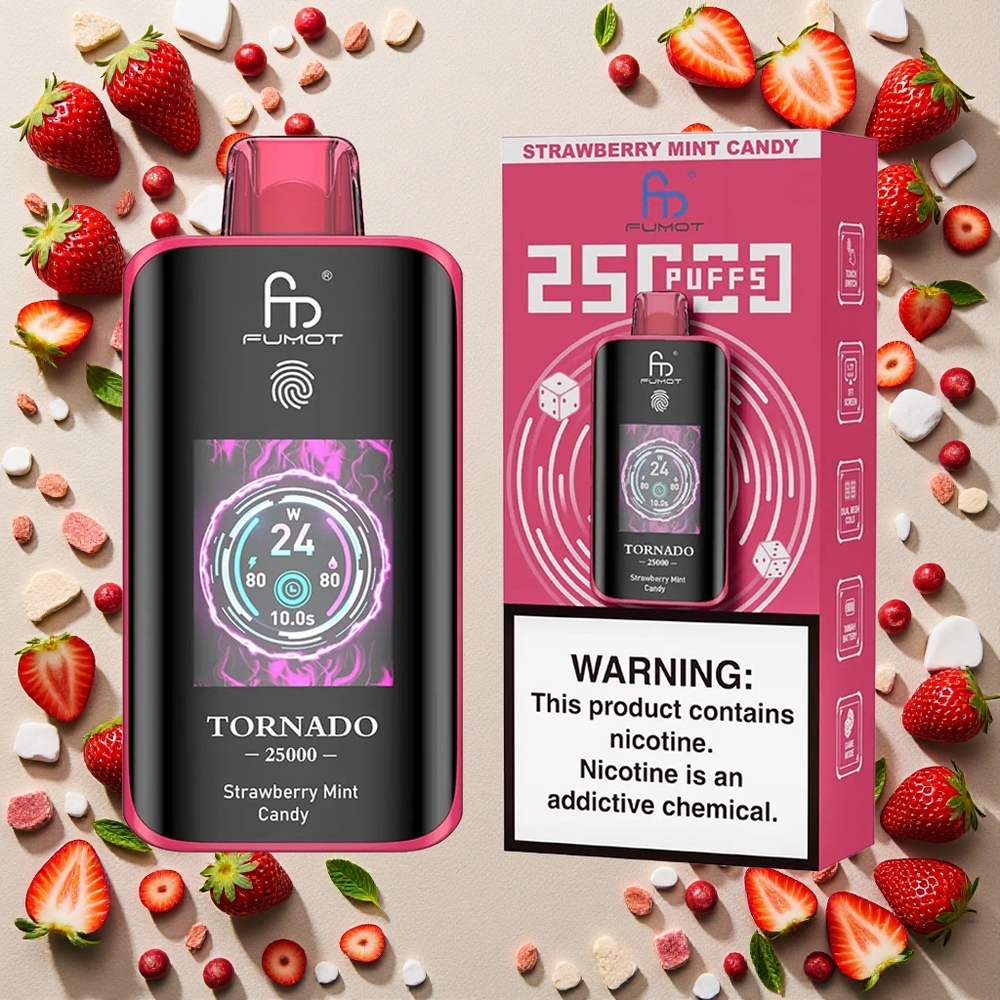 Jordbær Mynte Slik Fumot Tornado 25000 Puffs HD Skærm 700mAh Genopladelig Batteri