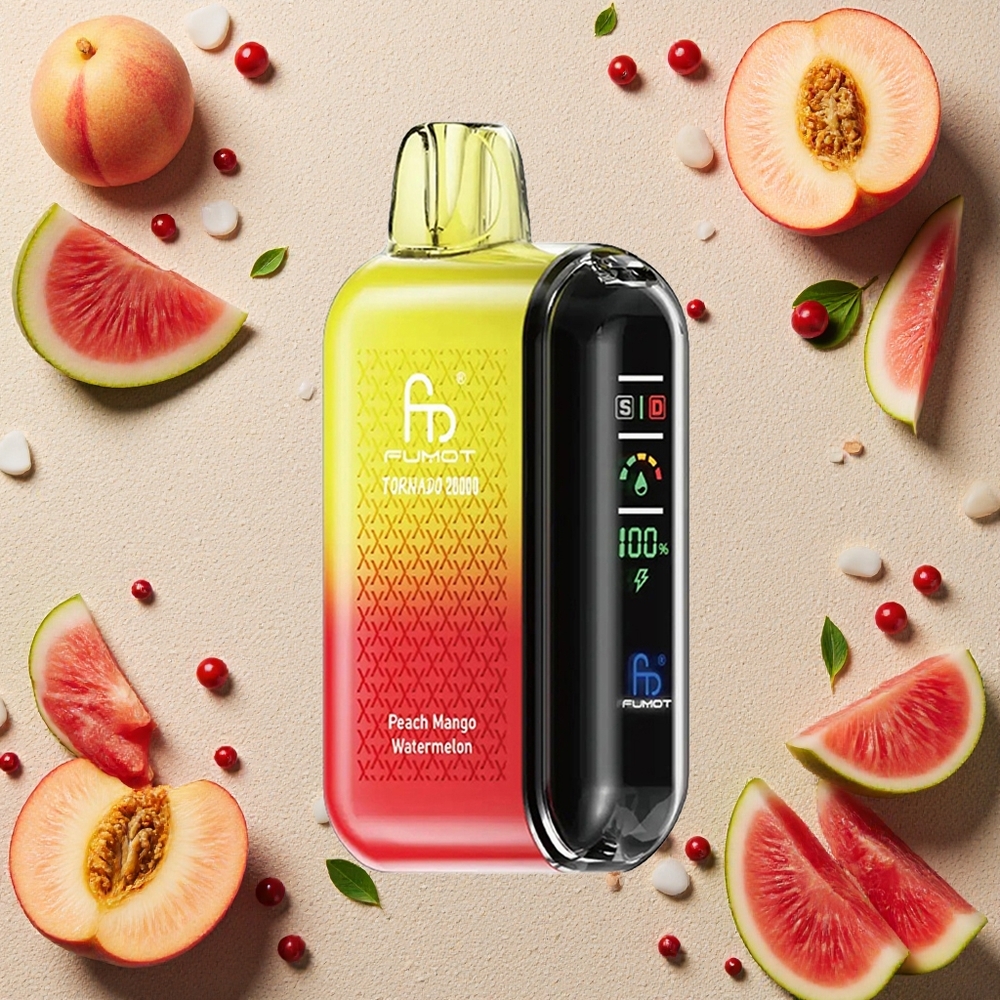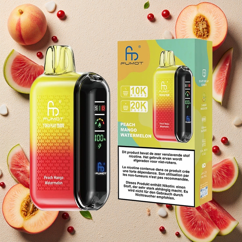 Fersken Mango Vandmelon Fumot Tornado 20000 Puffs Dobbelt Mesh Spole