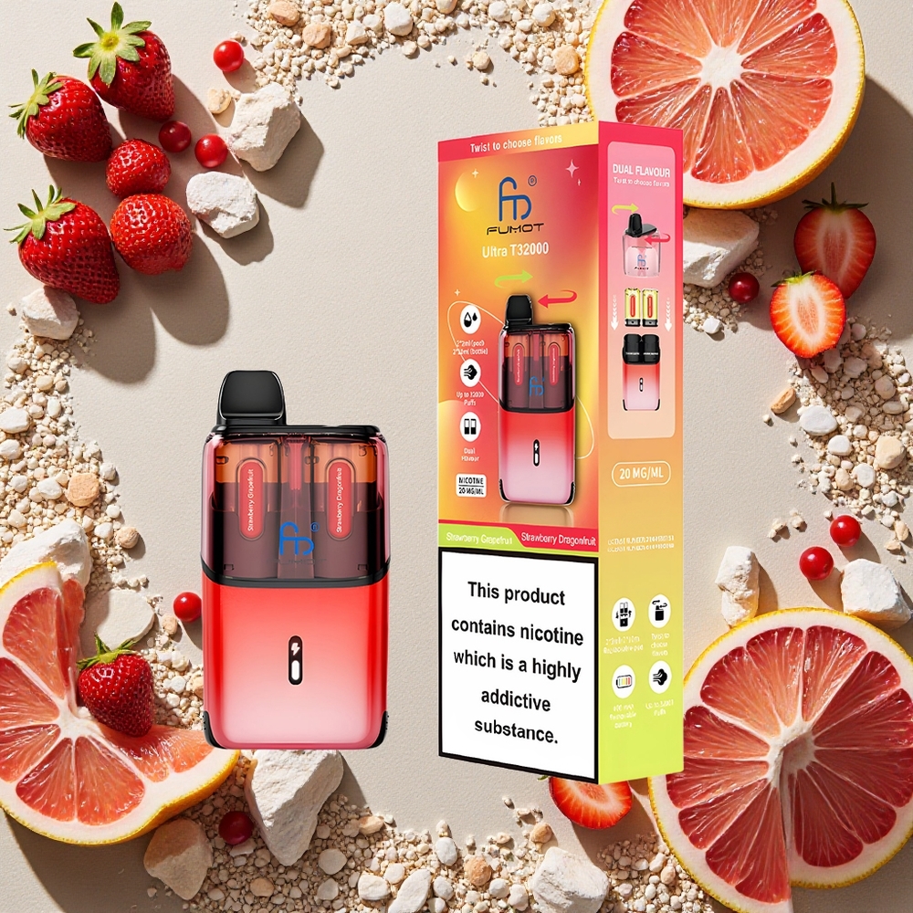 Jordbær-Dragefrugt Fumot Ultra T32000 32000 Pust 800mAh Batteri 24ml E-Væske Type-C Hurtigopladning Advanced Mesh Spole