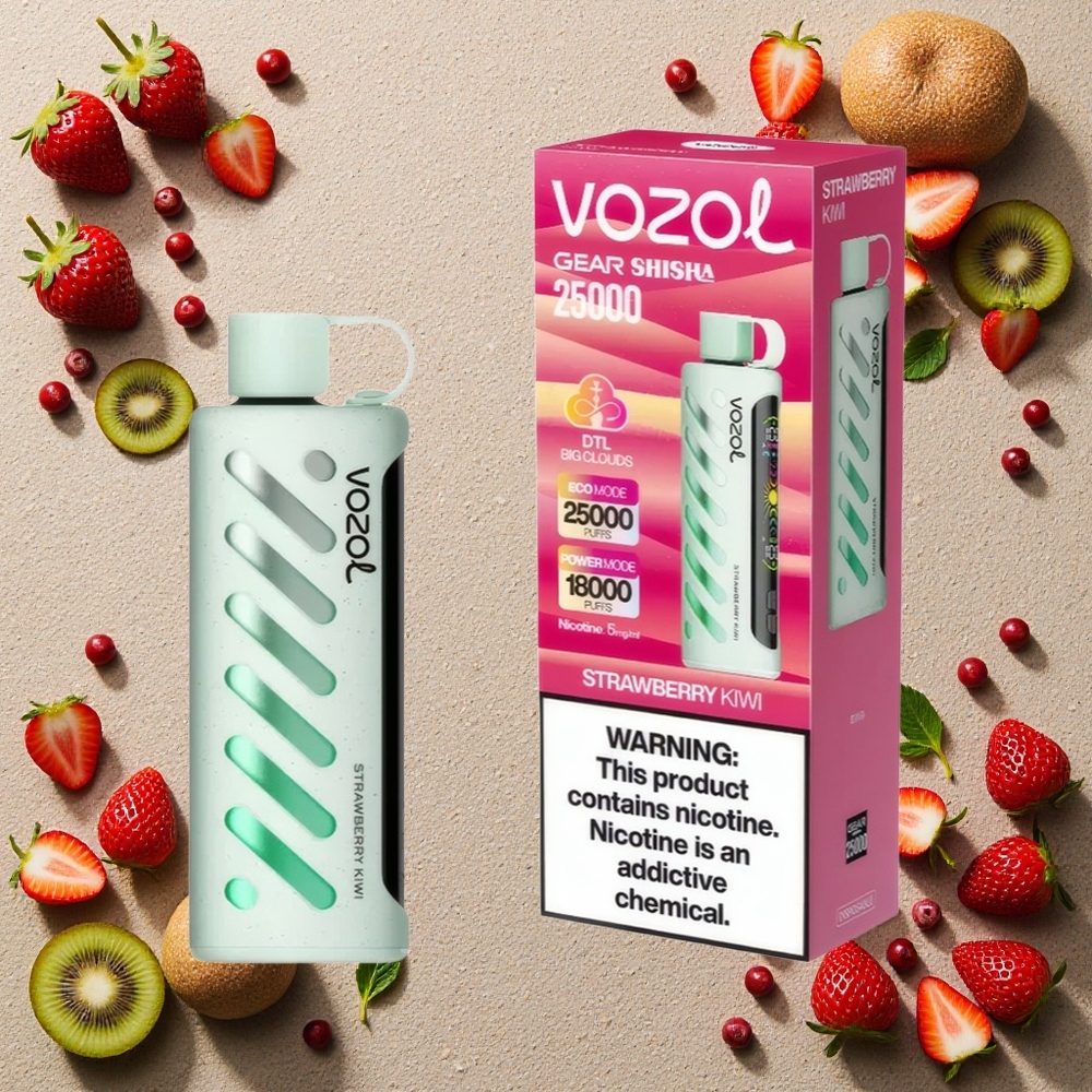 Jordbær Kiwi VOZOL Gear 25000 Puffs Shisha Dual Mesh 5mg/ml 1000mAh S.i.L.C Tech