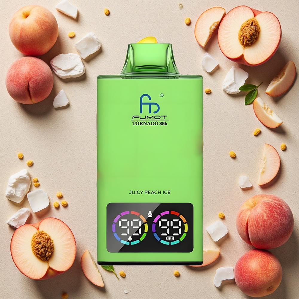 Juicy Peach Is (Saftig Fersken Is) Fumot Tornado 35000 Puffs Dobbelt Mesh Spole
